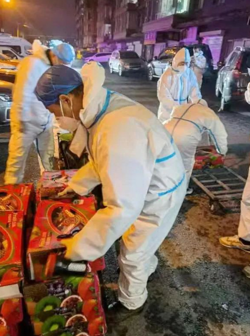 為解決物資分發量大、社區工作人員不足的問題,在吉林長春,東北工業集團奧威公司組建志愿服務隊,下沉社區開展志愿服務活動。“物資到了,大家到廣場集合……”早晨6點,志愿者們對物資進行卸車、清點、消毒,并派送到社區各個單元,有時他們連續七八個小時工作,只為盡早把物資送到居民手中。
