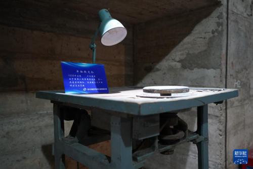 這是5月16日拍攝的中國光學歷史博物館內收藏的一臺單軸拋光機。